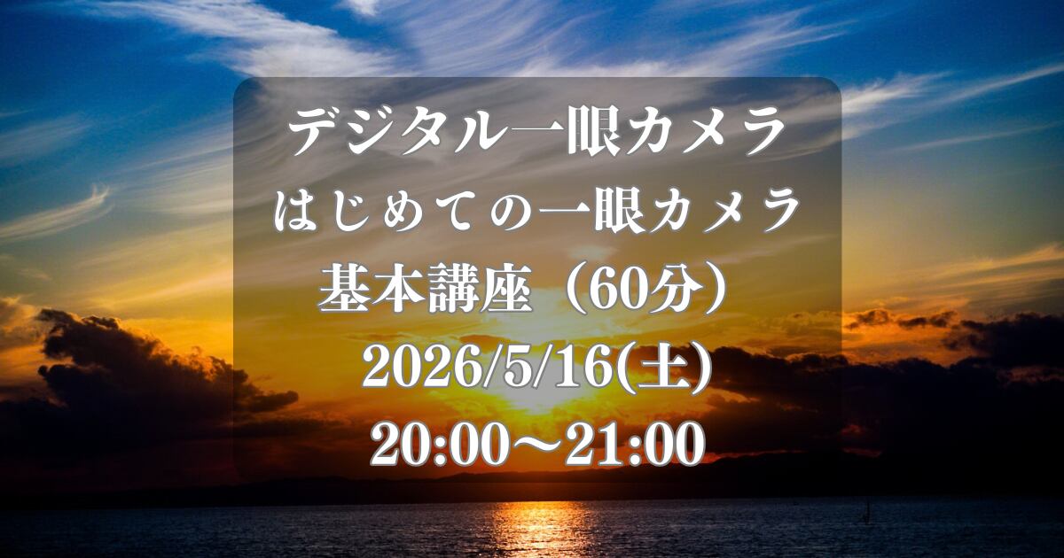 はじめての一眼カメラ基本講座(60分オンライン)2026/5/16(土) 20:00〜21:00